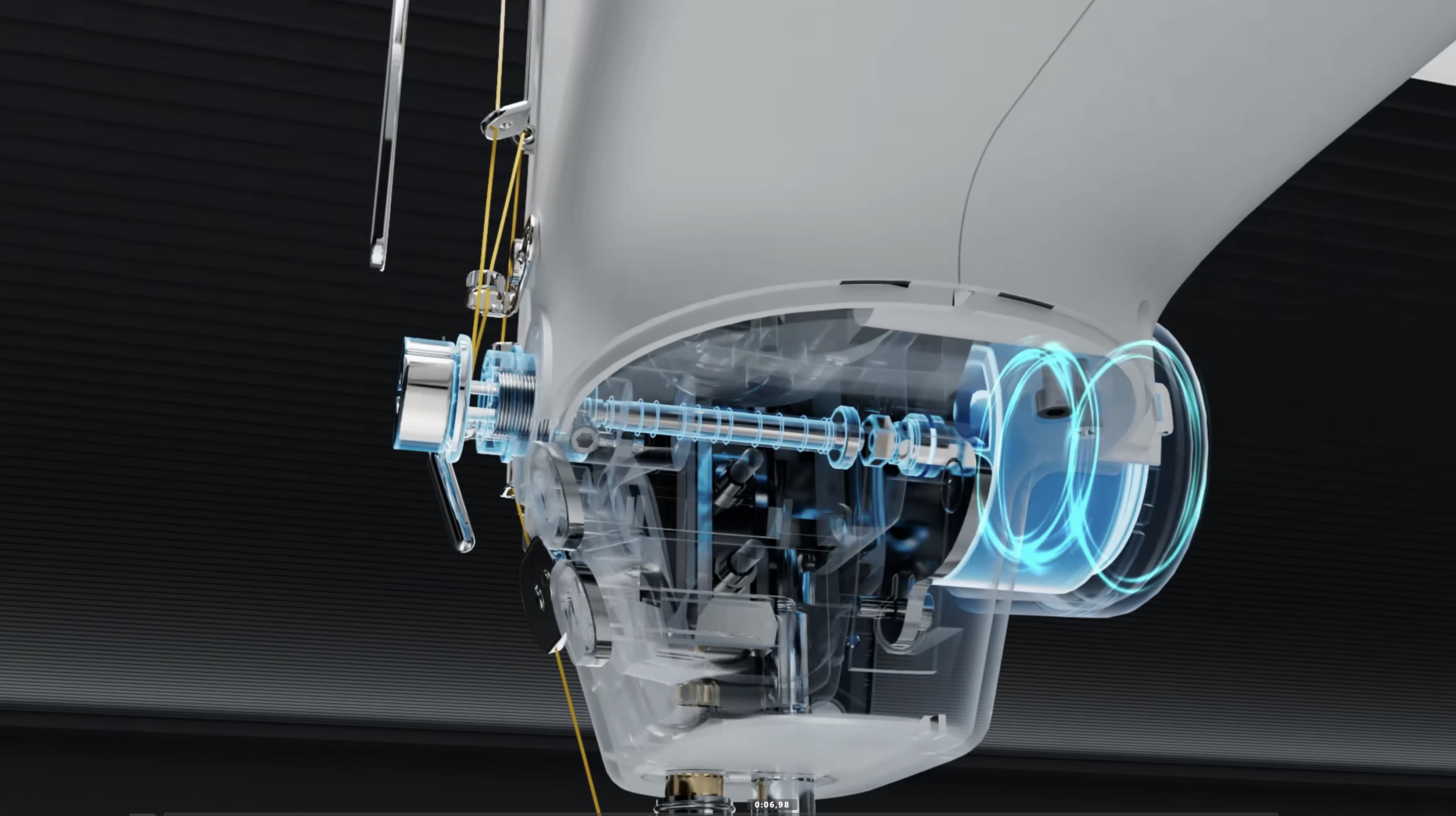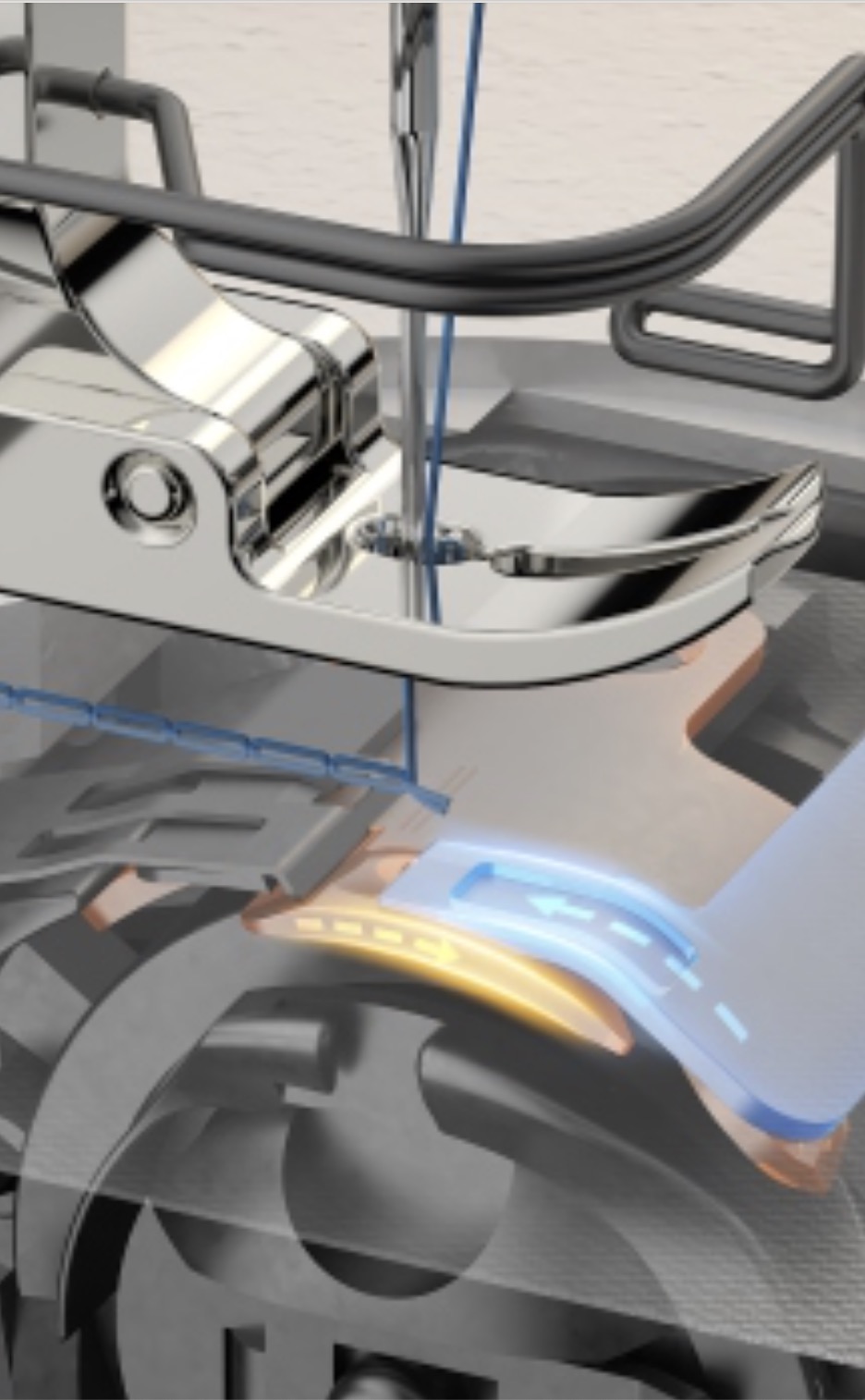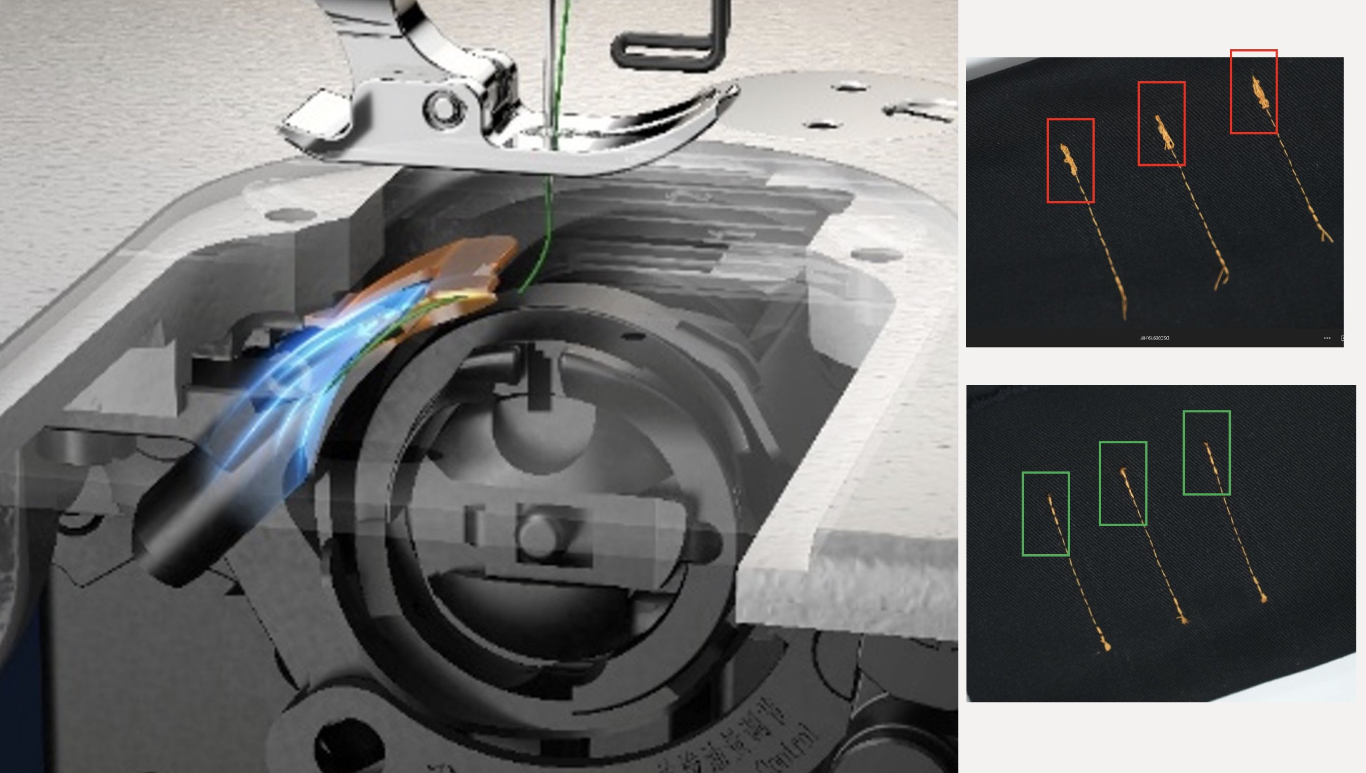 La macchina ha sia la testa a secco sia il corpo a secco grazie all'utilizzo di cuscinetti e cinghia di distribuzione. Solo il crochet puo' essere lubrici