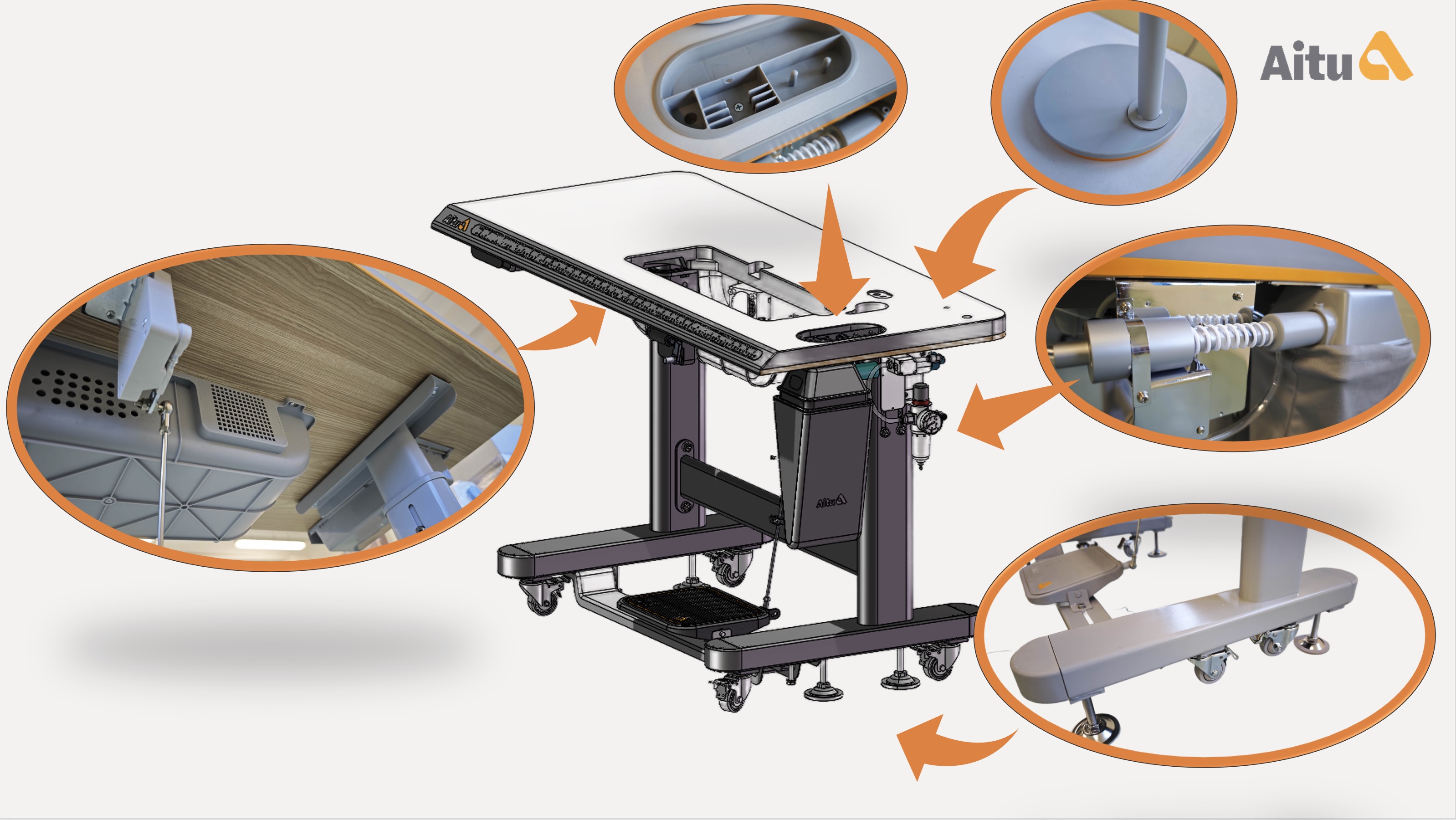 I dettagli contano: per questo la qualità di tavolo e sostegno con ruote ed altri accessori è di ottima fattura