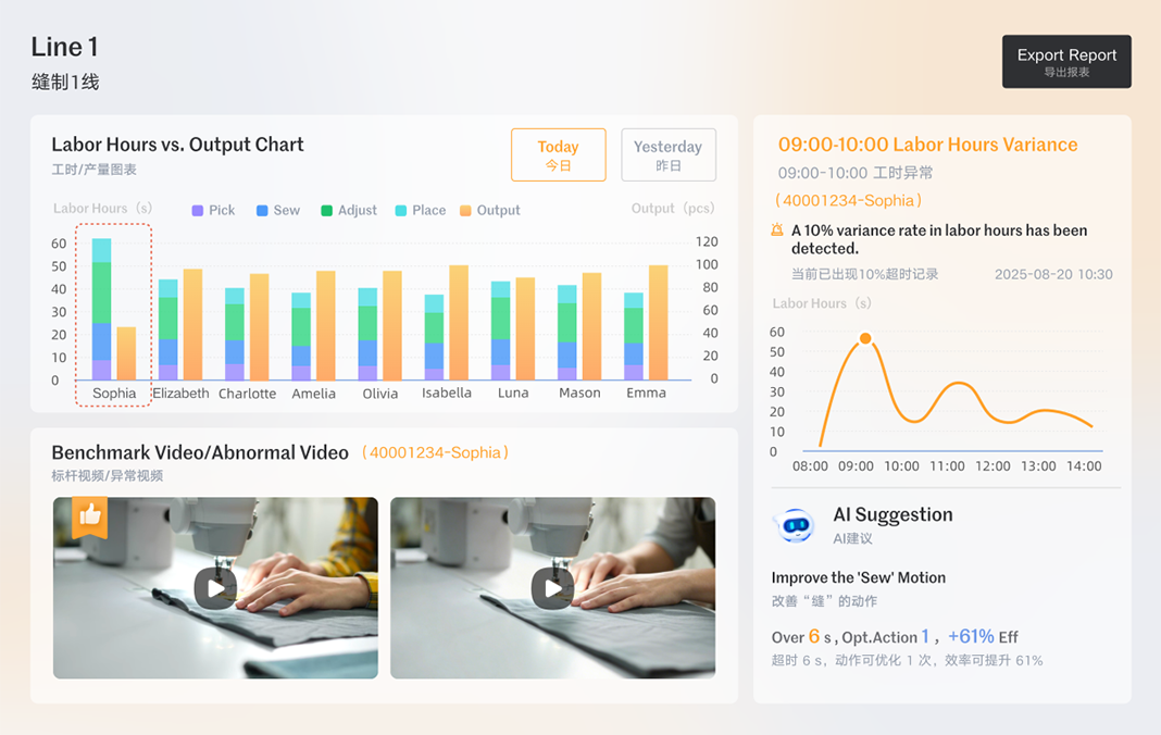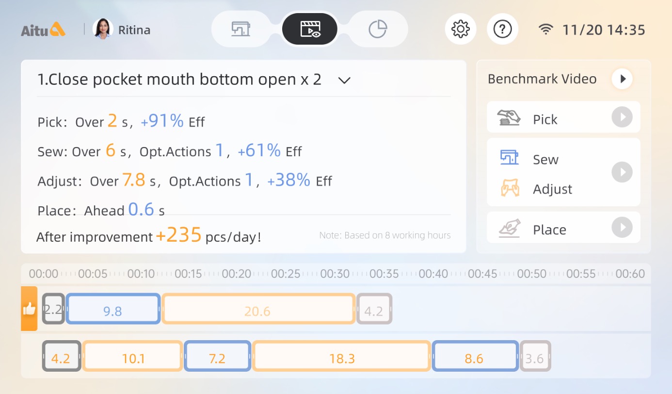 Analisi delle capacità della linea produttiva e delle operazioni del singolo operatore dando suggerimenti Ai su come ottimizzare la produzione.